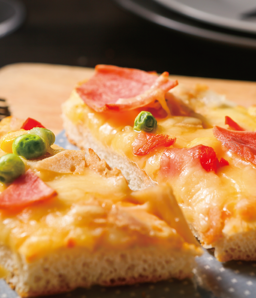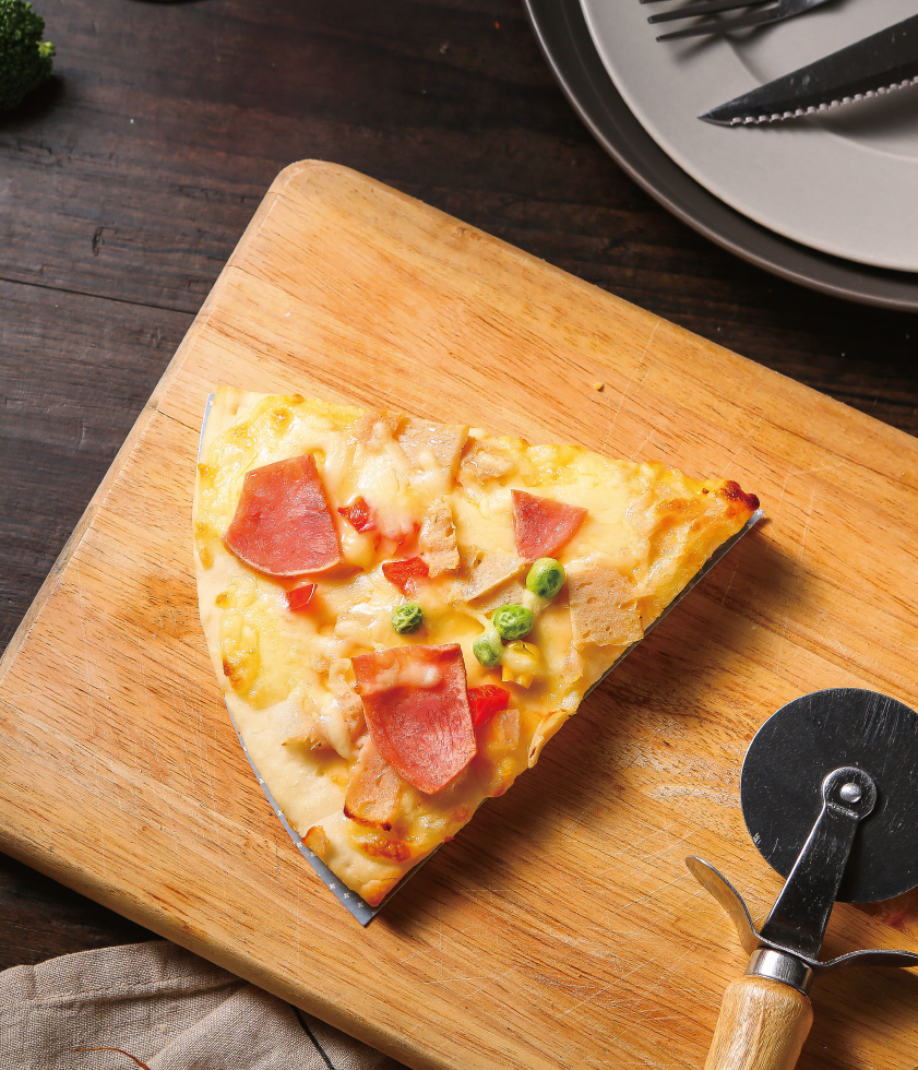 產(chǎn)品介紹:肉香滿溢匹薩——肉食主義者的心頭好!火腿、午餐肉,搭配青豆、洋蔥、紅椒、玉米,佐以酸甜可口的番茄醬,和奶香濃郁的芝士,無肉不歡,十足享受。